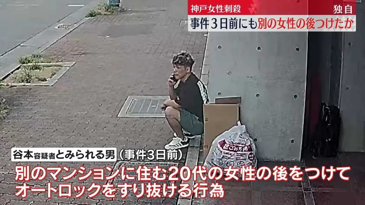 その後の取材で谷本容疑者が東京から神戸に到着した、事件3日前の今月17日、宿泊していたホテルの近くで容疑者とみられる男が別のマンションに住んでいる20代の女性の後をつけて、オートロックをすり抜ける行為を行っていたことが新たにわかりました。