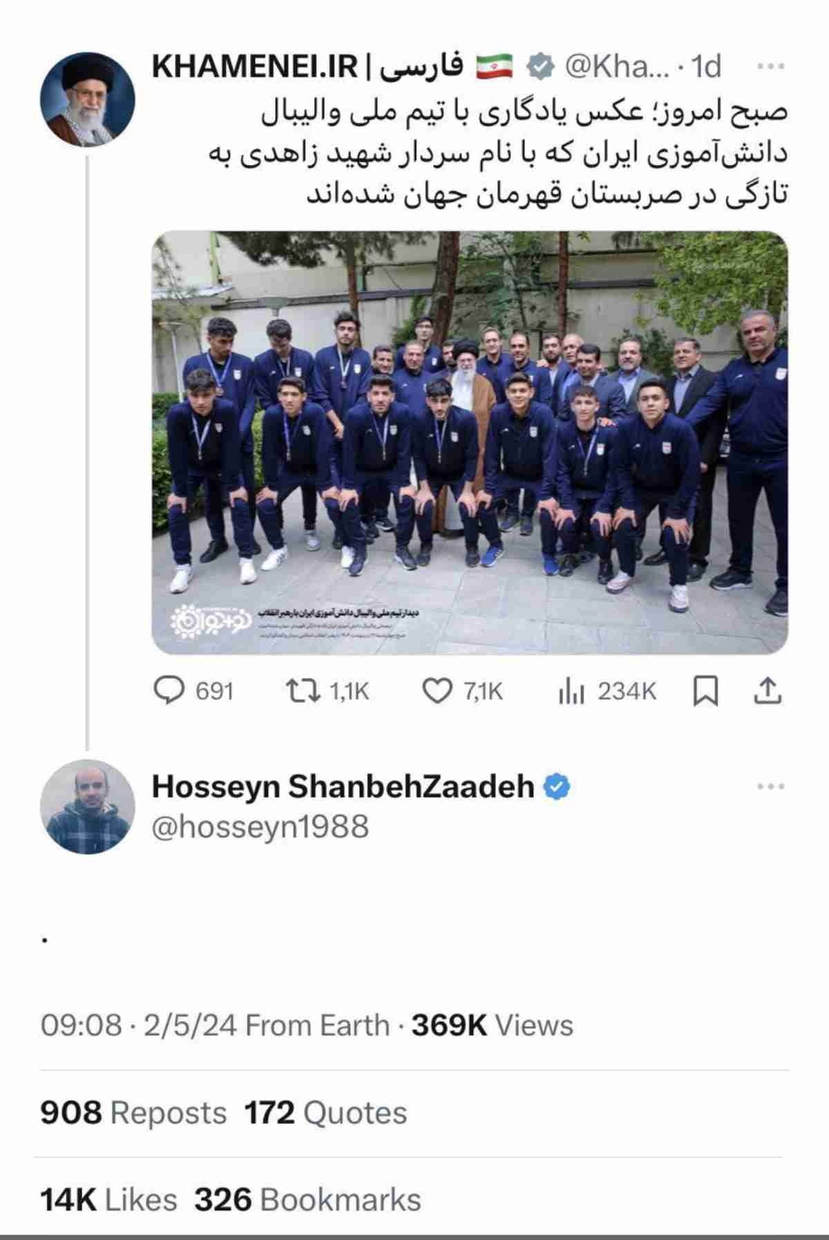 - >そんなシャンベザデ氏は2024年5月2日に、ハメネイ師がX上で行ったポストに対し「.」と返信しました。シャンベザデ氏の投稿にはハメネイ師の元の投稿よりもはるかに多くの「いいね」が付けられていたとのこと。