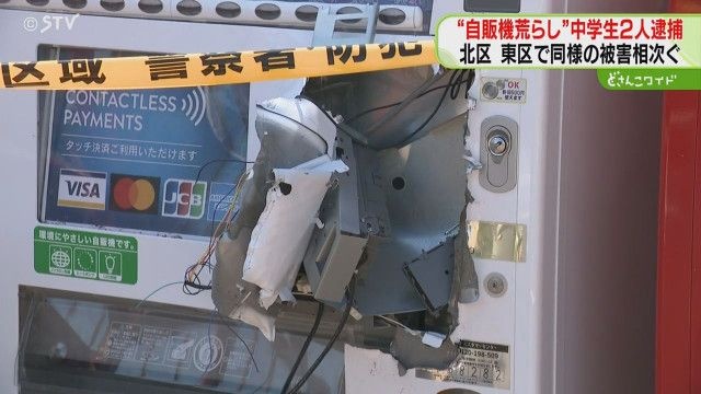 STVニュース北海道2025年8月、札幌市北区の公園で自動販売機4台が壊され、中の現金が盗まれた事件で、警察は窃盗の疑いで14歳の男子中学生2人を逮捕しました。
