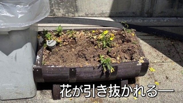 よく見ると、植えられた花が引き抜かれています。