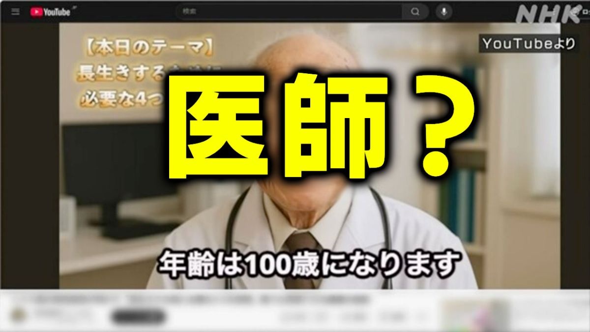 実在が確認できない医師を名乗って医療や健康に関する情報を語るAIで作られたとみられる動画が動画投稿サイト「YouTube」に多数、投稿されていることがわかりました。