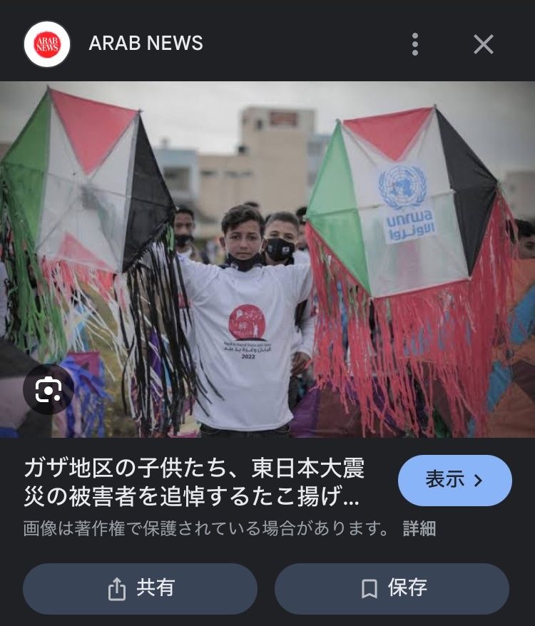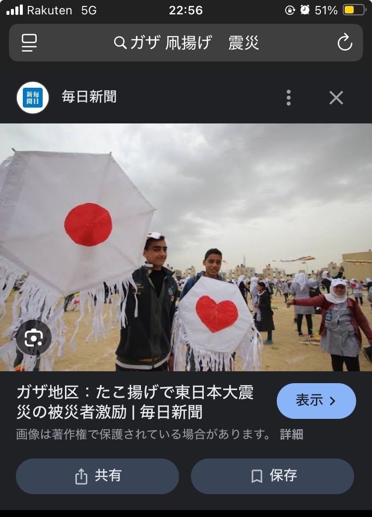 【号泣】パレスチナ人さん、毎年3.11に東日本大震災を追悼する凧揚げを開催していた…「日本がんばれ」