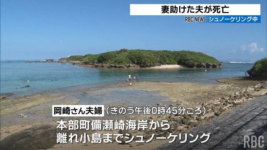 沖縄県本部町の海岸で27日、シュノーケリング中に沖に流された妻を救助した夫が意識を失い、その後死亡しました。