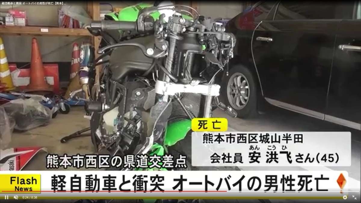 【熊本】軽自動車と衝突 オートバイの”あん こうひさん(45)”が死亡