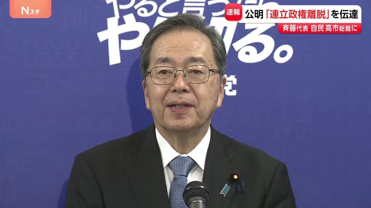 【速報】公明・斉藤代表 自民・高市総裁に 連立離脱の方針伝える