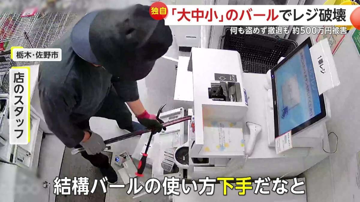 【栃木】「バールの使い方下手だな…」大中小のバールでレジ破壊を試みる男 何も盗み出せずレジ2台大破500万円相当の被害
