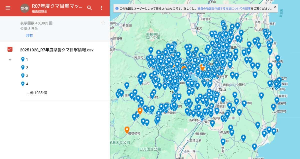 福島県ツキノワグマ目撃情報https://www.pref.fukushima.lg.jp/sec/16035b/tukinowaguma-mokugeki.html