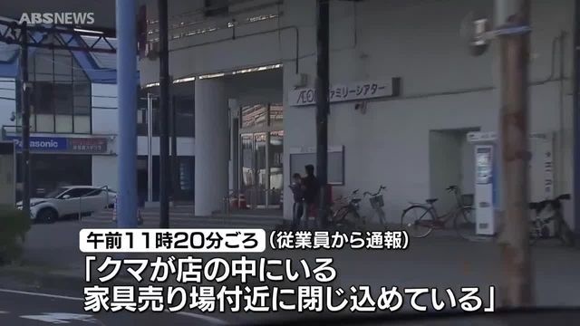 現場は能代市柳町のイオン能代店です。能代警察署や能代市によりますと16日午前11時20分ごろ、イオン能代店の従業員から「クマが店の中にいる。家具売り場のあたりに閉じ込めている」などと110番通報がありました。従業員がついたてなどを使ってクマを1階の北側、家具売り場近くに囲い込んだということです。当時店内にいた客と従業員にけがはありませんでした。