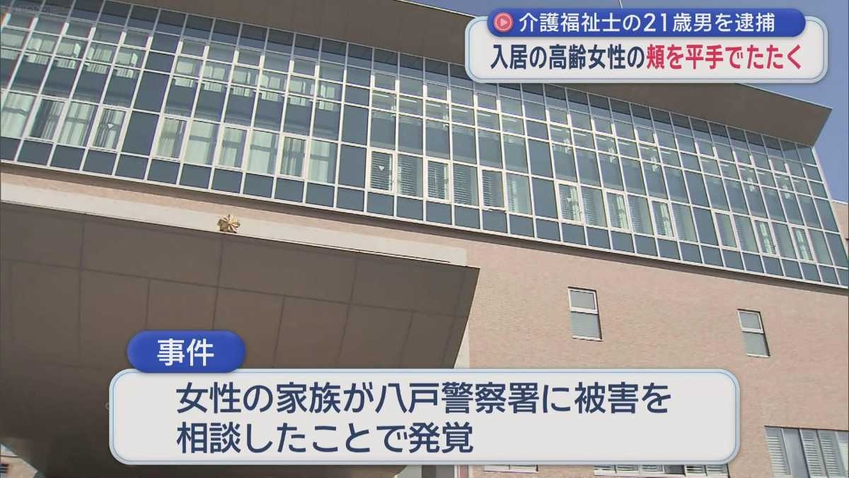 - 先月、八戸市の老人保健施設で入居者の女性の頬を平手打ちしたとして、施設に勤務する21歳の男が逮捕されました。