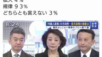 ニュー速 外国人受け入れの"拡大”と”規律”どちらを優先すべき? →拡大 4%、規律 93%
