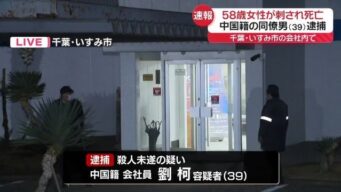 talkニュー速+ 【千葉・いすみ市】会社で58歳女性刺される 殺人未遂容疑で中国籍の男逮捕 女性死亡