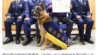 ニュー速+ 【千葉】初出動でお手柄 嘱託犬「レックス」が行方不明男性発見 男性は自ら首を切った状態…現在は回復 野田署が感謝状