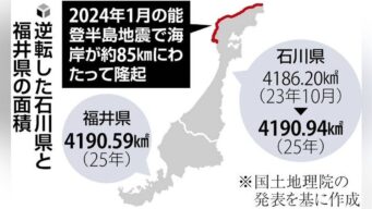 ニュー速 石川県、能登地震の土地隆起で福井県より大きくなる