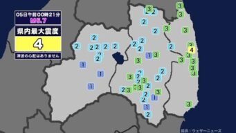 ニュー速+ 【地震】福島県内で震度4 福島県沖を震源とする最大震度4の地震が発生 津波の心配なし