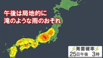 ニュー速+ 【ゲリ豪】今日25日はゲリラ雷雨に注意 局地的に滝のような雨も 大雨による災害に注意・警戒