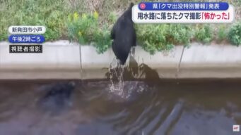 ニュー速 用水路に落ちたクマ撮影「人間の叫び声かと思うくらいすごかった」、県『クマ出没特別警報』を発表
