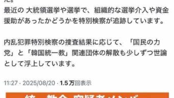政治ニュース+ 【世界平和統一家庭連合】紀藤正樹氏、韓国検察「統一教会トップ韓鶴子氏」も「視野」の見方示す 元NO2逮捕状報道で